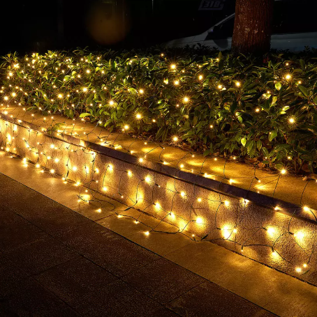 | Redes de luz LED | Grade pré-organizada de luzes que cabem sobre arbustos ou seções do seu telhado para uma exibição uniforme. | Melhor para cobrir grandes áreas de forma rápida e uniforme. |
